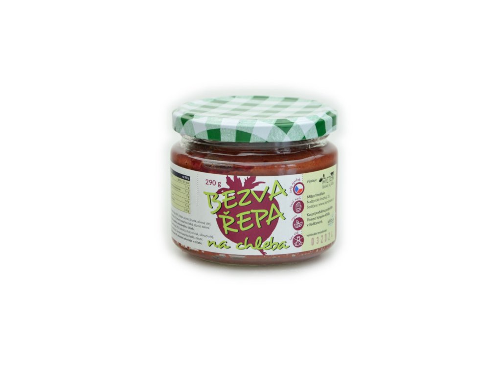Hrubá pomazánka z červené řepy, čočky a cizrny je výbornou volbou k snídani nebo na svačinu. Chuť je lehce zvýrazněná česnekem. Skladování: při pokojové teplotě, po otevření skladujte v chladu a spotřebujte do 3 týdnůNutriční hodnoty