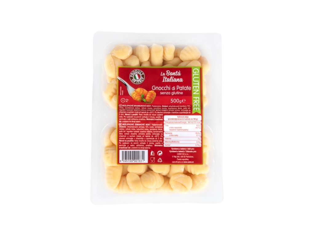 Bezlepkové noky můžeme stejně jako těstoviny podávat jako hlavní chod nebo přílohu na český a italský způsob. Výhodou balení noků jsou 2 samostatné vaničky po 250g. Bezlepkové potraviny jsou vhodné zejména pro konzumenty s intolerancí lepku.Nutriční hodnoty