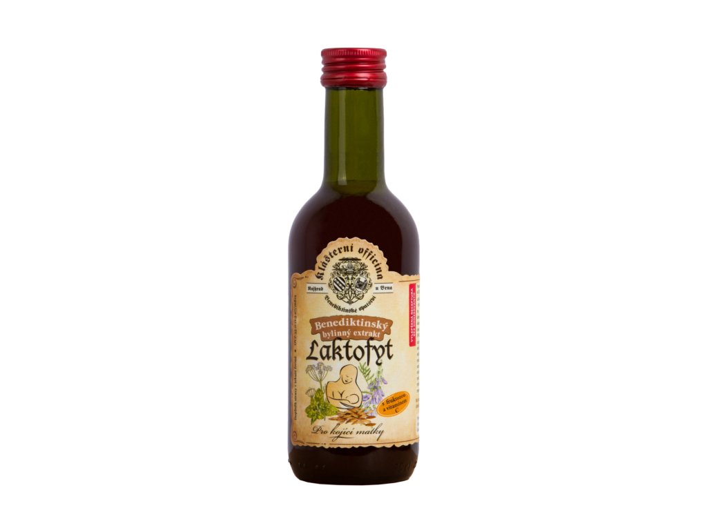 Benediktinský bylinný extrakt Laktofyt ve formě sirupu a kombinace jeho bylin je určena pro kojící matky a má pozitivní vliv na laktaci (kojení), přispívá k dobrému trávení, vylučování vody z organismu. Bez konzervantů, obohaceno o vitamín C.Nutriční hodnoty