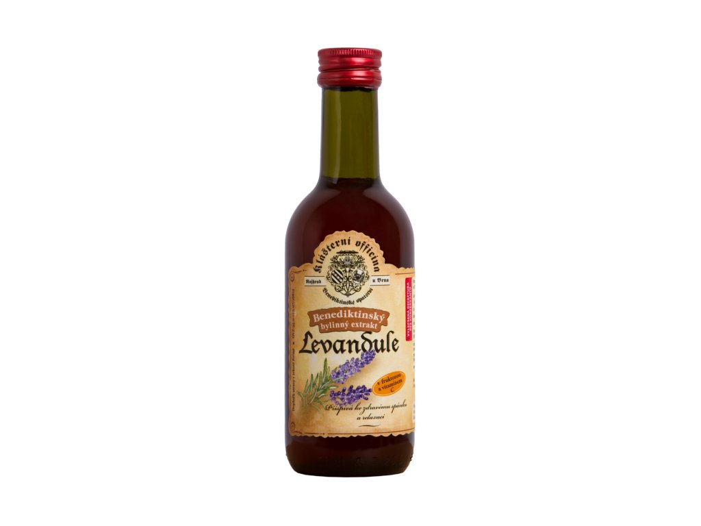 Benediktinský bylinný extrakt z levandule úzkolisté ve formě sirupu přispívá k relaxaci, duševní pohodě, normálnímu trávení a spánku. Hlavní účinnou látkou je éterický olej, kyselina rozmarýnová a hydroxykumariny.Nutriční hodnoty