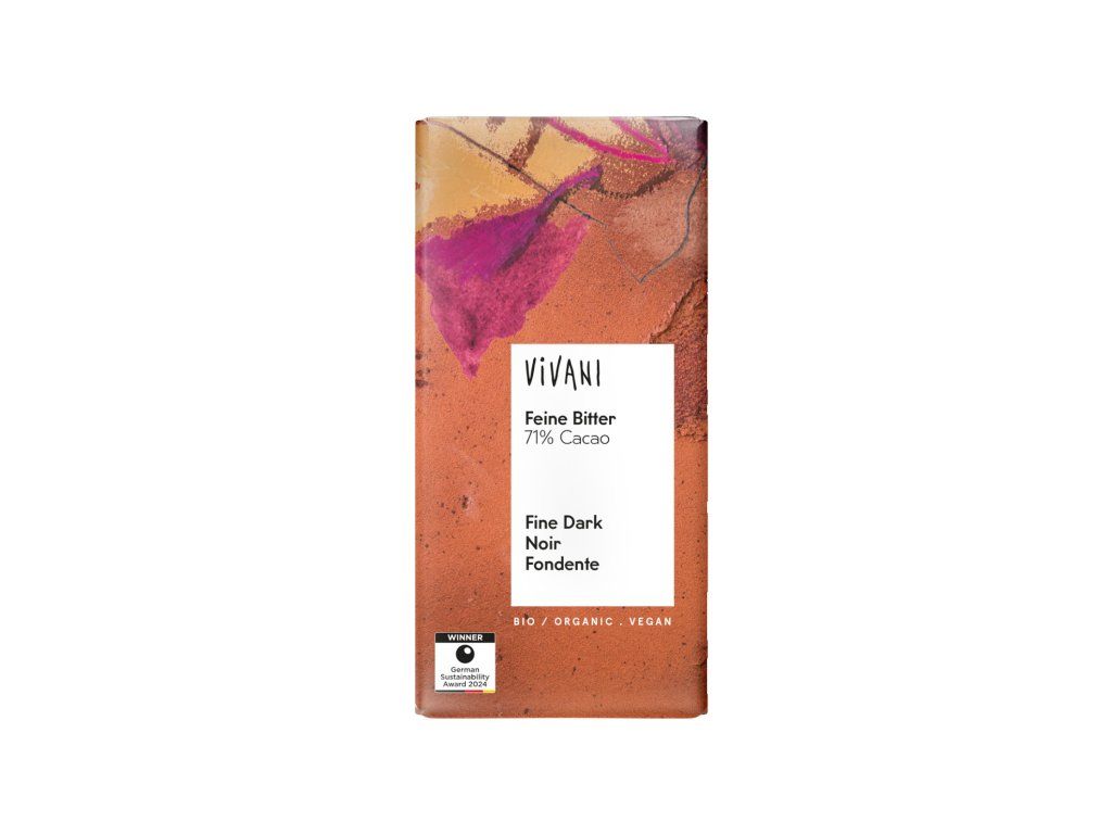 Potěšení pro gurmány a milovníky kvalitní hořké čokolády. VIVANI Fine Dark se 71% obsahem kakaa z Dominikánské republiky je skvělým zážitkem i pro začátečníky v oblasti hořké čokolády.Nutriční hodnoty