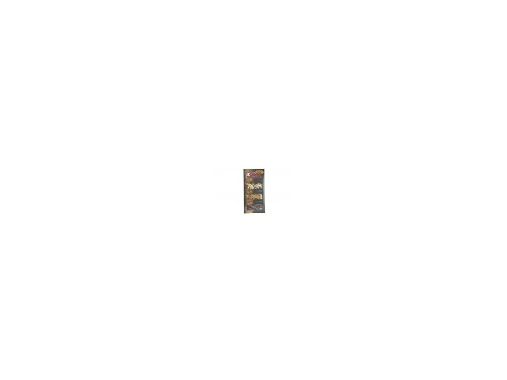 Tabulky z hořké čokolády zdobené lískovými ořechy, kešu, pistáciemi, mandlemi, brusinkami, kustovnicí, chia semínkem, lyofilizovanými malinami.Nutriční hodnoty