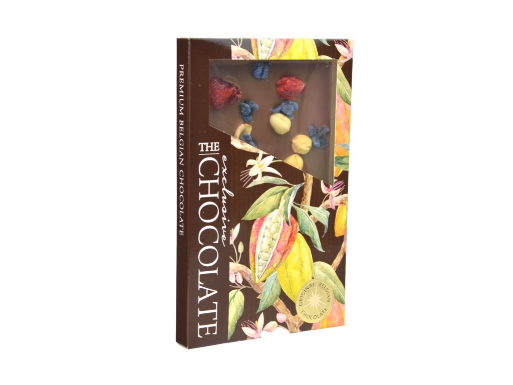 Čokoláda mléčná s lískovými ořechy, třešněmi a fialkami - Severka 145g