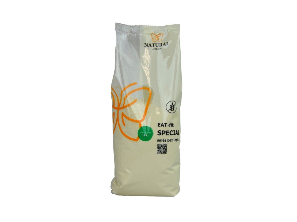 Vyrobeno podle originální receptury EAT-fit. Směs přirozeně bezlepkových mouk pro křehká, třená, litá a piškotová těsta. Bezlepková směs na přípravu křehkých, třených, litých a piškotových těst. EAT-fit bezlepková směs SPECIAL v sobě snoubí přednosti tří přirozeně bezlepkových mouk doplněných o kypřidlo. Vytvoříte z ní parádní bábovku, křehkou buchtu, dortový korpus nebo další cukrářské výrobky. Inspiraci k pečení najdete na https://www.naturaljihlava.cz/recepty.phpNutriční hodnoty
