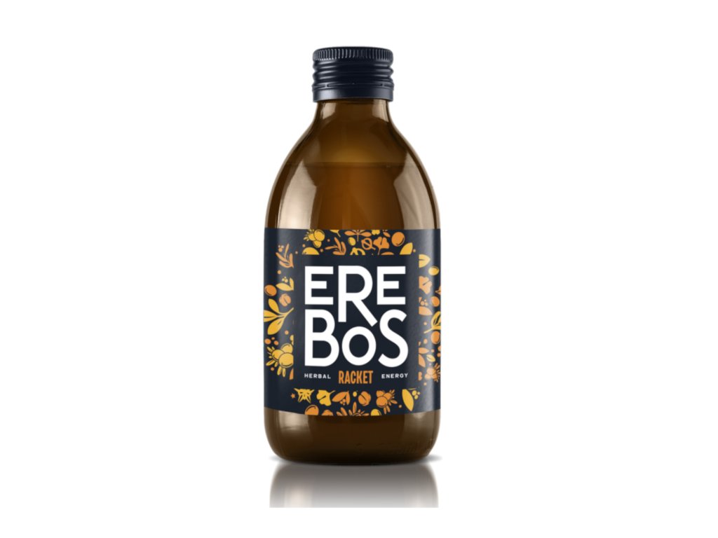 Osvěžující nápoj s přírodní šťávou z českých rakytníkových sadů, který v sobě spojuje vysoký obsah vitaminu C a antioxidanty, podporující imunitu a zdraví pokožky. Jeho lehce kyselá a přirozeně osvěžující chuť dodá tělu energii, kterou potřebuje, aniž by obsahoval umělá sladidla či konzervanty. Ideální pro ty, kdo hledají přírodní, vitamínovou podporu a přirozený náboj pro každý den. EREBOS RACKET je energetický bylinný nesycený nealkoholický nápoj (250 ml) s vysokým obsahem přírodního kofeinu (40 mg/100 ml) a rakytníkovou šťávou.Nutriční hodnoty