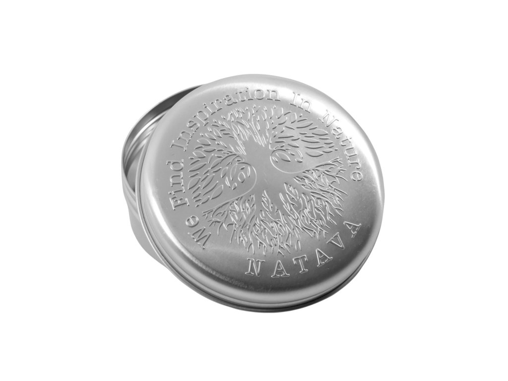 Praktická šroubovací mýdlenka je speciálně vyvinutá pro tuhá tělová másla, šampony a balzámy na vlasy přírodní řady NATAVA. Chceme, aby se vám s našimi výrobky pohodlně cestovalo. Při běžném používání v domácnosti je ideální mít tuhé šampony, mýdla a másla další výrobky na suchém místě a na větraném roštu. Za tímto účelem nabízíme krásnou mýdlenku. Toto pouzdro pro Vás bude praktickým partnerem pro cestování. Po použití nechte například šampon vyschnout a poté jej zavřete do nádobky, která má vytvořené prolisy, aby se produkt napřilepil ke dnu. Originální výlisek stromu života, který je logem naší přírodní řady NATAVA, dělá z krabičky dokonalý šperk. Použití: Tuhé máslo lze do krabičky vložit bezprostředně po použití. V případě tuhých šamponů a balzámů doporučujeme prostředky nejprve po použití opláchnout od zbytků pěny a nechat vyschnout na co nejvíce větraném místě. Materiál: hliník Rozměry: výška 3 cm, průměr 8,5 cmNutriční hodnoty