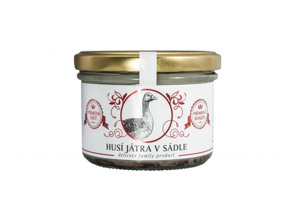 Delikatesa z husích jater zalitá sádlem.Nutriční hodnoty