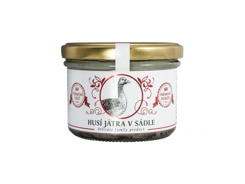 Delikatesa z husích jater zalitá sádlem.Nutriční hodnoty