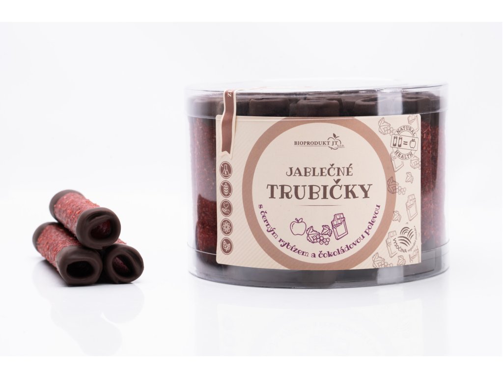 Jablečné trubičky s čokoládovou polevou a ČERNÝM RYBÍZEM dóza - Trutna 540g