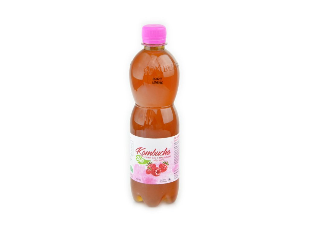 Kombucha - je speciální nápoj s kvasinkovými kulturami a bakteriemi kyseliny mléčné (mléčnými bakteriemi), lehce fermentovaná. Kombucha s malinovou příchutí je vyráběna z čajové houby kombucha a černého čaje.Nutriční hodnoty