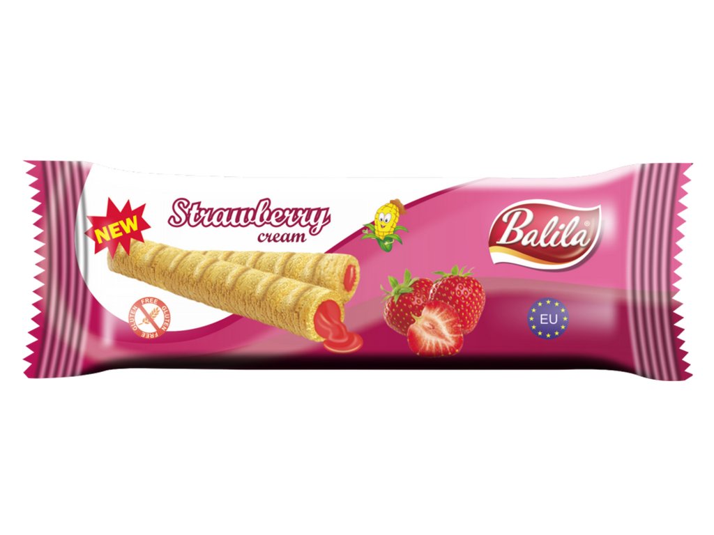 Kukuřičné trubičky plněné krémem s jahodovou příchutí bez lepku - Balila 18g