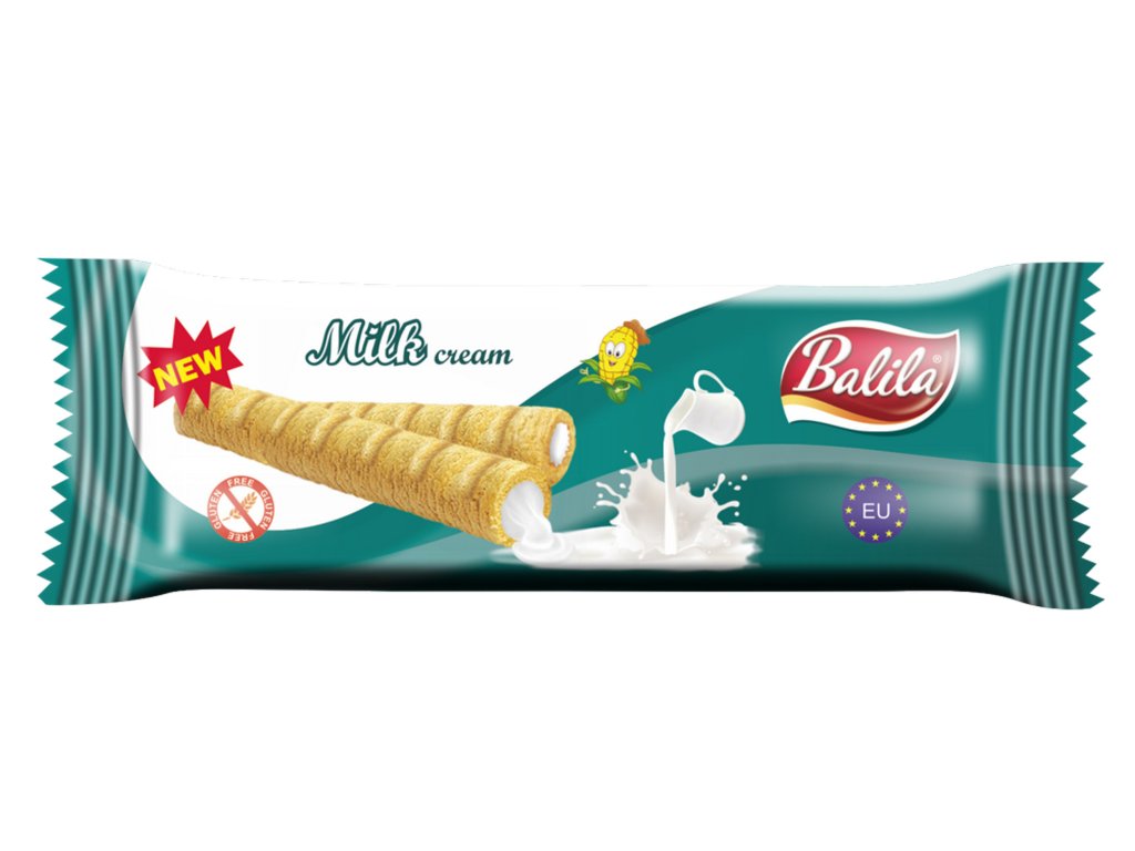Kukuřičné trubičky plněné krémem s mléčnou příchutí bez lepku - Balila 18g