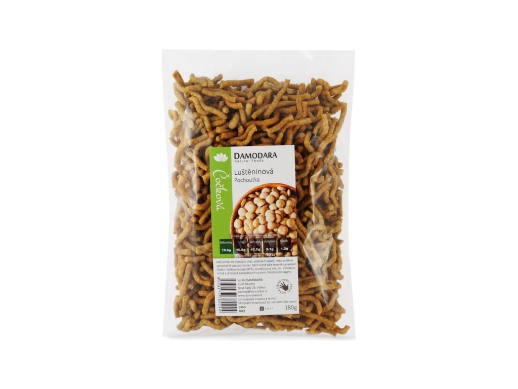Křupavá čočková pochoutka. Lze ji přidávat do polévek, použít jako přílohu nebo si ji vychutnat samostatně . Není nutné dále tepelně upravovat. Díky specifické receptuře, používané při výrobě ztrácí luštěnina svou nepříjemnou vlastnost nadýmání a stává se tak přijatelnou a lehce stravitelnou potravinou. Produkty DAMODARA neobsahují žádné živočišné produkty ani jakékoliv přísady vyrobené za použití živočišných produktů. Zdravý křupavý mls. Luštěniny jsou výborným zdrojem rostlinných bílkovin.Nutriční hodnoty