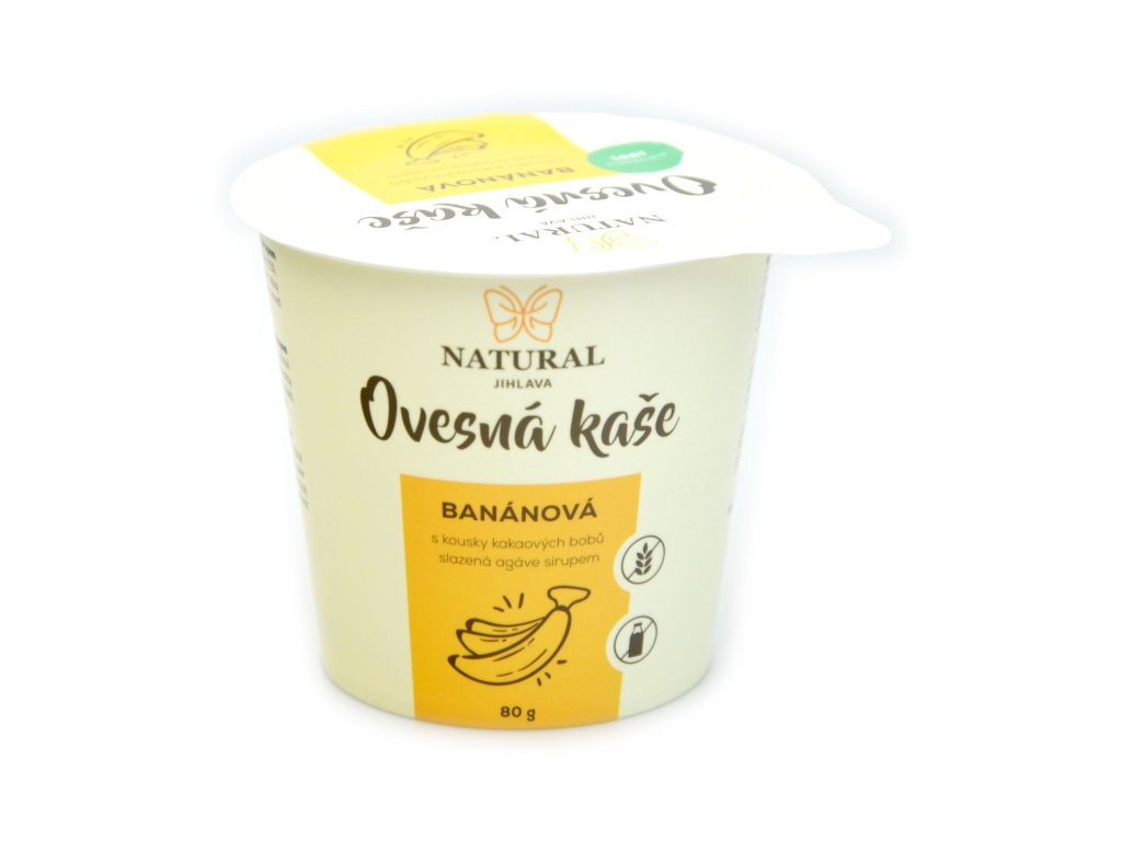 Jednoporcová bezlepková kaše banánová s kousky kakaových bobů slazená RAW agáve sirupem.Nutriční hodnoty