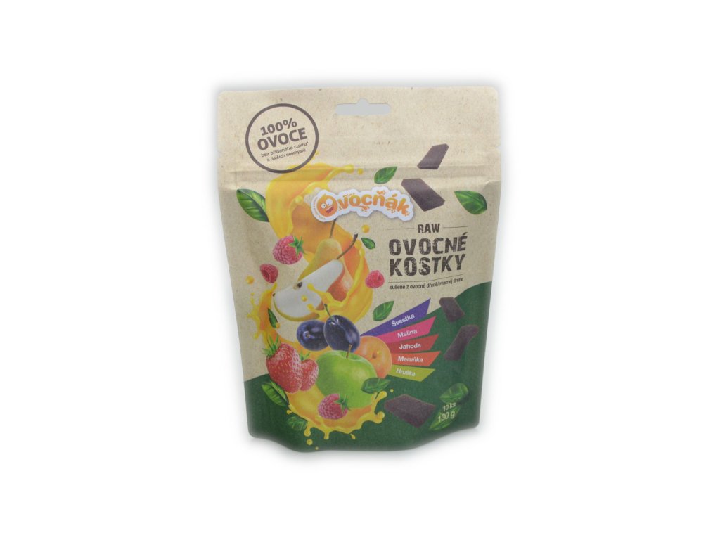 Ovocné kostky jsou vyrobeny pouze z ovoce. To bylo nejdříve pasírováno a pak v podobě dřeně několik hodin sušeno při nízké teplotě tak, aby si kostky zachovaly to nejlepší. * Obsahuje pouze přirozeně se vyskytující cukryNutriční hodnoty