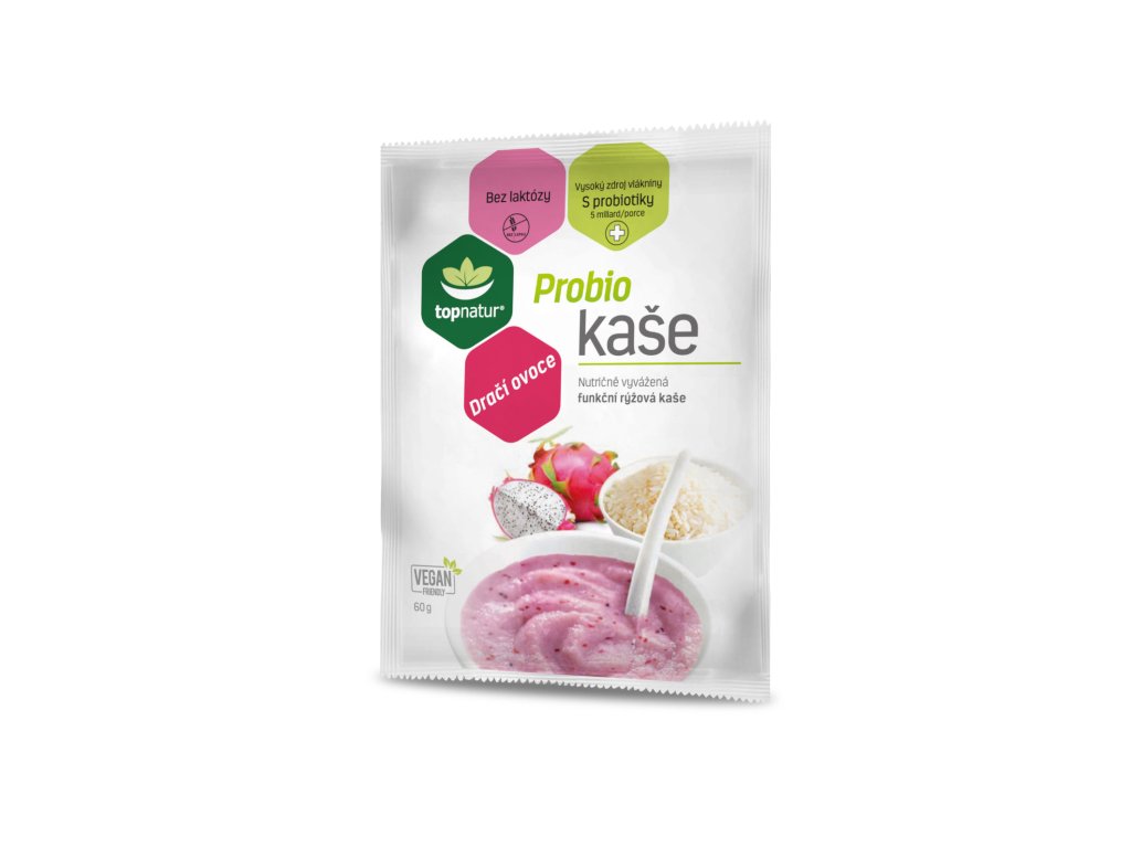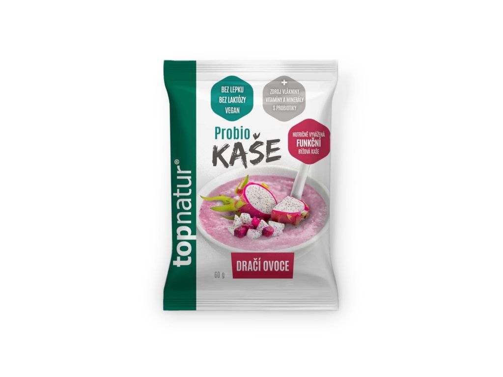 Probio kaše s příchutí Pitahayi – exotické ovoce u nás známé jaké dračí ovoce, je určena pro milovníky aromatického ovoce připomínající svou chutí angrešt či vodní meloun. Dračí ovoce je bohaté na vitamin C, karoteny, vápník a železo. Pitahaya je nízkokalorická a obsahuje vysoké množství vlákniny. Kaše neobsahuje lepek, laktózu ani kasein a je tak vhodná pro lidi s výživovým omezením a pro zájemce o racionální stravování. Probio kaše jsou jedinečné přídavkem 6 probiotických kmenů v množství 5 miliard na porci. Dále obsahují inulin, prebiotickou vlákninu, která je velmi důležitá jako živný substrát pro růst probiotických kultur obsažených v kaši. Probio kaše obsahují také vitaminy a minerály – A, B1, B6, B12, C, D3, vápník, hořčík, fosfor, selen, železo, niacin a kyselinu panthothenovou. Snídaně s dobou přípravy pouze 3 minuty po zalití horkou vodou do 80 °C. Naše Probio kaše jsou vhodné pro rekonvalescenty a sportovce stejně jako pro osoby s intolerancí k laktóze, s bezlepkovou dietou, pro vegany, seniory a mohou je konzumovat i děti.Nutriční hodnoty