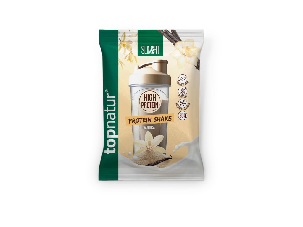 High protein shake, který pohladí chuťové buňky a zasytí na dlouhé hodiny. Jemná vanilková chuť se smetanovým nádechem – bez lepku, s vlákninou a vitamíny Vanilkový Slim & Fit shake nabízí perfektní kombinaci jemné chuti vanilky se smetanovým nádechem a vysokého obsahu proteinu, který zasytí a podpoří regeneraci svalů. High protein shake, který pohladí chuťové buňky a zasytí na dlouhé hodiny – bez lepku, s vlákninou a důležitými vitamíny a minerály. Skvělý jako rychlá snídaně, svačina nebo doplněk po tréninku. - High protein – výživa, která funguje - Jemná vanilka se smetanovým nádechem - Vitamíny, minerály a vláknina - Bez lepku Příprava: Rozmíchejte obsah sáčku v 200 ml vody nebo mléka.Nutriční hodnoty