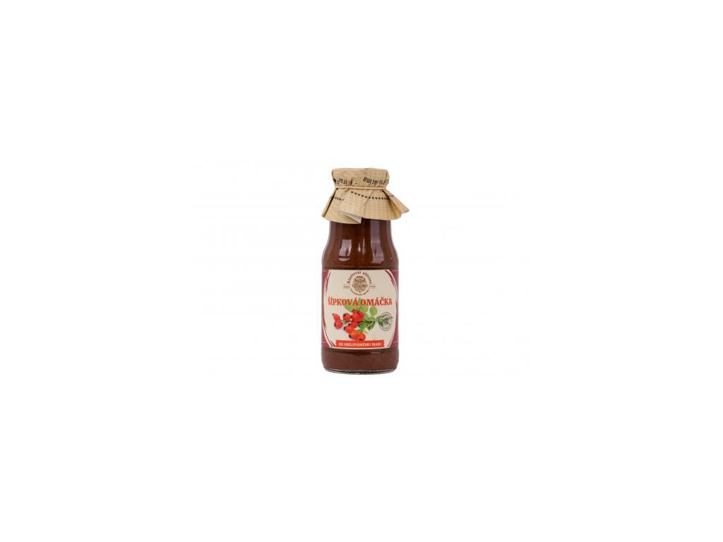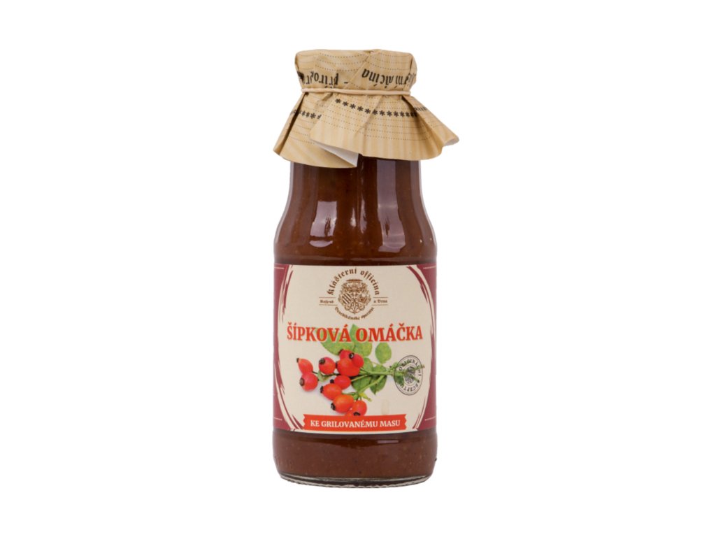 Šípková studená omáčka je vyrobená dle tradičních receptur a vyniká jako příloha k tmavým masům a letnímu grilování. Použití: Chuť šípkové omáčky se dokonale snoubí se zvěřinou (kančí kýta) i tmavými masy. Příchuť šípkové omáčky se ale hodí i k masům ostatním, například ke králičímu a jehněčímu. Zajímavá je kombinace s uzeným jazykem či sýry. Studenou omáčku po otevření uchovávejte v chladu a spotřebujte do 2 měsíců od otevření. Omáčku ze šípků skladujte v suchu a temnu.Nutriční hodnoty