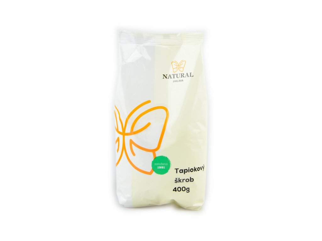 Tapiokový neboli maniokový škrob (někdy označován jako mouka) je přirozeně bezlepkový a má neutrální chuť. Má vynikající pekařské vlastnosti. Tapioka má široké využití, lze ji přidat do bezlepkové mouky a zlepšit konzistenci hotových jídel. Je vhodný na zahušťování polévek a omáček, na sladké i slané pečení. Tapiokový škrob je výborná náhrada za klasickou pšeničnou mouku. A má opravdu široké spektrum využití. Obsahuje spoustu sacharidů, bílkoviny a hlavně neobsahuje lepek ani jiné alergeny. Tapiokový škrob je tak ideální pro celiaky, vegany či při paleo stravě. Tapioka je škrob získávaný z oddenku manioku, který nám nejblíže může připomínat například batáty nebo brambory. Yuca – Maniok jedlý (Manihot esculenta), známý též pod jménem cassava či yuca, nebo tapioca v Asii, je kulturní tropická rostlina z čeledi pryšcovité. Někdy se manioku podobně jako jamům a batátům přezdívá sladké brambory. Maniok je bylina nebo keř dorůstající výšky 1 až 3 metry. Tapiokovou moukou lze nahradit u nás běžně užívanou pšeničnou mouku, což ocení zejména lidé trpící celiakií. Mouka se hodí jako adekvátní náhrada pro výrobu pečiva v bezlepkové dietě. Navíc pečivo z maniokové mouky vydrží až o tři dny déle, je velmi jemná, vláčnější a méně se drolí. Používá se pro přípravu sladkých i slaných těst, k zahušťování omáček a jiných pokrmů, může rovněž nahradit vaječný bílek při přípravě bábovek, sekaných či bramborových placek. Maso či ryby posypané maniokovým škrobem před pečením jsou vláčnější a chuťově výraznější. Ale můžeme ji nahradit marantovým nebo kukuřičným škrobem. Tapioka má však ale jemnější výsledek. Tapiokový škrob má jedinečné expanzní (zvětšuje objem) vlastnosti, které se mohou uplatnit při pečení a smažení pekařských výrobků. Pro zvýšení objemu u chleba je vhodný přídavek ¼ – ½ šálku tapiokového škrobu, při použití rýžové mouky je nejvhodnější náhrada ¾ šálku rýžové mouky 1 šálkem tapiokového škrobu.Nutriční hodnoty