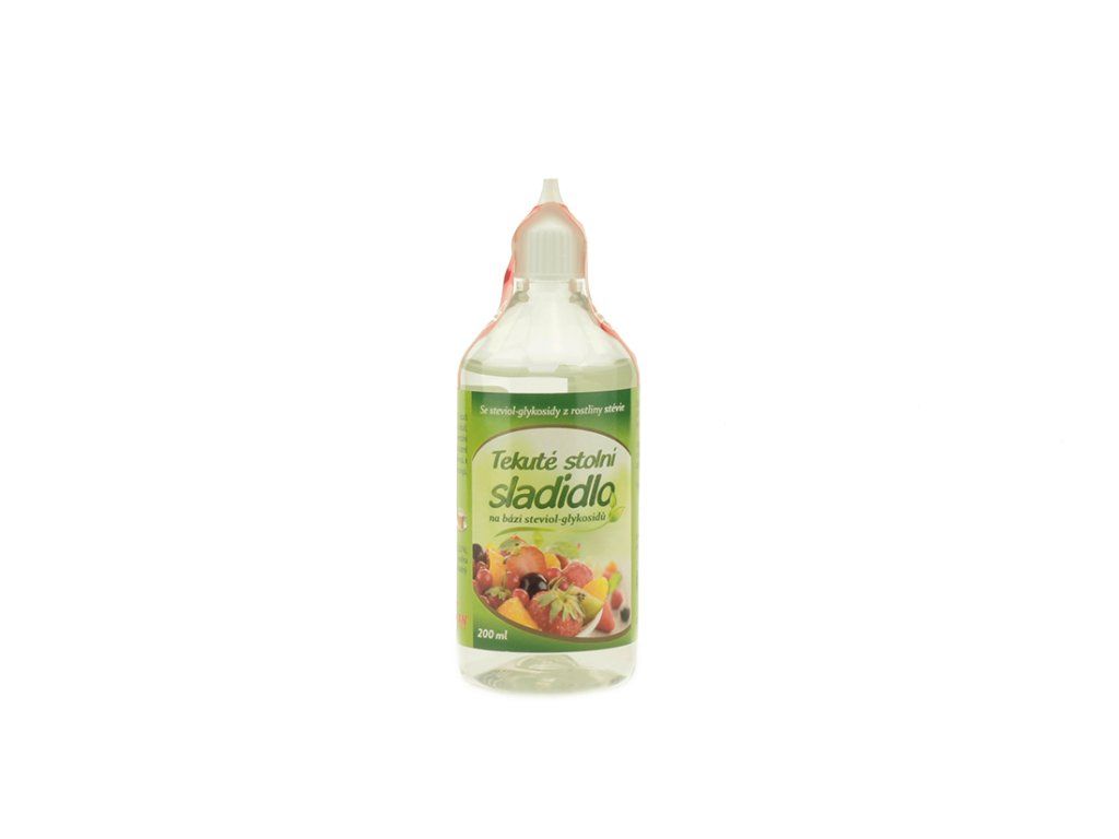 Tekuté stolní sladidlo na bázi steviol-glykosidů je univerzálním sladidlem vhodným zejména k přímému slazení. Vyrábí se z extraktu z rostliny Stevia Rebaudiana Bertoni - steviol-glykosidu, který je rozpuštěn v destilované vodě. 100ml sladidla nahradí 500g cukru. Vhodný pro slazení teplých, studených nápojů, pokrmů, dressingů, salátů, ovoce a zeleniny na zavařování.Nutriční hodnoty