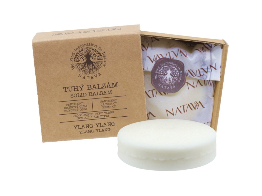 Tento přírodní tuhý balzám je věrným partnerem při péči o vlasy a vlasovou pokožku. Je balený v plně rozložitelné krabičce a voskovaném papírovém sáčku, který napomáhá tomu, aby k Vám výrobek dorazil čerstvý a plný vůní. Originální receptura v sobě ukrývá ricinový a konopný olej, které společně vlasy vyživují a podporují jejich zdravý růst. Přírodní tuhý balzám zabalený s maximálním ohledem na přírodu a životní prostředí v recyklovatelném papírovém obalu obsahuje bohaté přírodní složky. Navíc je velmi praktickým společníkem na cestách. V jeho základu najdete kakaové a bambucké máslo vázající vodu. Díky tomu budou vlasy intenzivně vyživené. Používání balzámu usnadní následnou péči o vlasy, jejich úpravu a rozčesávání. Doporučujeme jej používat na vlasy umyté šamponem stejného druhu. Nechte se okouzlit jemnou květinovou vůní esenciálního oleje ylang-ylang. Čerpejte sílu přírody a těšte se pocitem, že po spotřebování balzámu nezatížíte životní prostředí plastovou lahví. Použití: Vybraný tuhý balzám stačí promnout v navlhčených rukou a vzniklou emulzi vmasírovat do vlasů i pokožky. Je důležité nechat všechny účinné složky pár minut působit a poté teprve pečlivě opláchnout. Po aplikaci balzám opláchněte a uložte na co nejsušší místo, ideálně na kovový rošt či elegantní mýdlenku. Můžete mu pořídit i praktický kovový obal, který se hodí zejména během cestování.Nutriční hodnoty