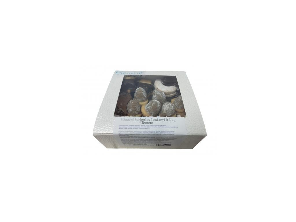 Vanilkové rohlíčky: bezlepková směs (kukuřičný škrob, kukuřičná mouka, rýžová mouka, čočková mouka, tapiokový škrob, tara guma) cukr, MÁSLO, VEJCE, citrónová kůra,vanilkový cukr