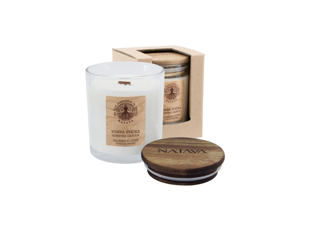 Proč právě tato sójová svíčka? • Až 40 hodin zdravého hoření • Dřevěný knot • Jedinečná vůně • Šetří životní prostředí • Aromaterapeutické účinky • Působivý design Svíčka s jemnou dýňovou vůní vyčaruje příjemnou atmosféru a dokáže do domova přenést kouzelné teplé podzimní vůně. Navodí pocit pohody, souladu a pomáhá obnovit harmonii. Vonné svíčky dokreslí kouzlo dané chvíle k Vaší momentální náladě a umožní navodit tu správnou atmosféru. Budou Vám dělat společnost v jakékoliv situaci, stačí si jen vybrat, škrtnout sirkou a užívat si oblíbenou vůni a chvíle pohody. Svíčky ze sójového vosku v elegantním skle mají dřevěný knot, který zajišťuje rovnoměrné rozpouštění vrstvy vosku a rozptýlení vůně po celé místnosti. Knot vytváří krásný tančící plamen a svým praskáním navozuje velmi příjemnou atmosféru. Aroma svíčkám dodávají pečlivě vybrané parfémy. Použití: Stačí zapálit dřevěný knot. Doporučujeme vždy nechat svíčku hořet alespoň tak dlouho, aby se rozpustila celá horní vrstva vosku až ke sklu. Jen tak dosáhnete maximální životnosti svíčky. Zhasnutí svíčky provedete elegantně a bez nežádoucího kouře zavřením víčka skleničky. Plamen je díky nedostatku kyslíku uhašen prakticky hned. Exklusivní parfemace: • Hlava - karambola, bílý meloun, sladký pomeranč • Srdce - kokosový květ, jasmín, tóny mojita • Základ - cedrové dřevo, mošus, tonkaNutriční hodnoty