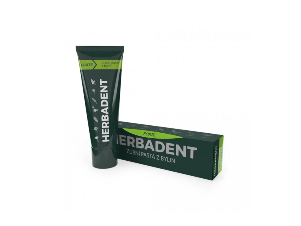 HERBADENT FORTE Zubní pasta z bylin obsahuje čtyřnásobné množství extraktu HERBADENT ze 7 bylin a vysoký podíl fluoridů (1450 ppm). Kombinace bylin podporuje regeneraci a hojení podrážděných sliznic, fluoridy posilují zubní sklovinu a chrání ji tak před vznikem zubního kazu. Bez lepku. Vegan.Nutriční hodnoty
