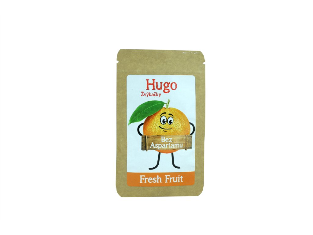 Žvýkačky od českého výrobce Hugo neobsahují aspartan nebo jiná umělá sladidla či barviva. Jsou slazeny xylitolem získávaným z kůry břízy bělokaré nebo z ovoce a mají méně kalorií v porovnání s běžnými žvýkačkami s přidanými sladidly. Vhodné i pro diabetiky.Nutriční hodnoty